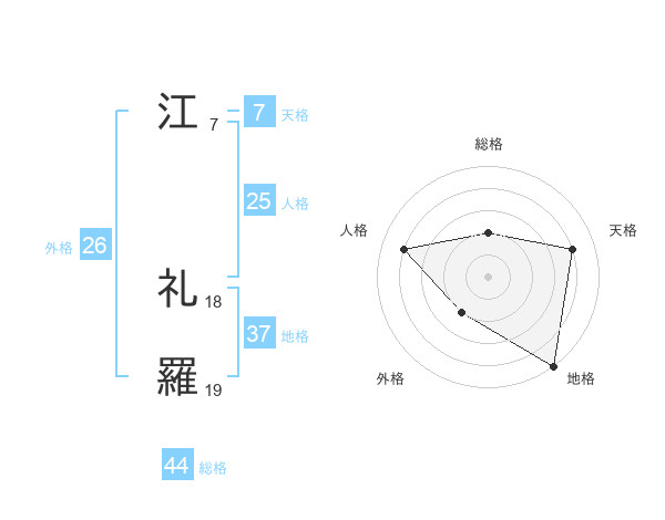 江 礼羅さんの総格は44画の2点!