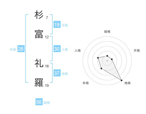 杉富 礼羅さんを姓名の画数から五運を鑑定