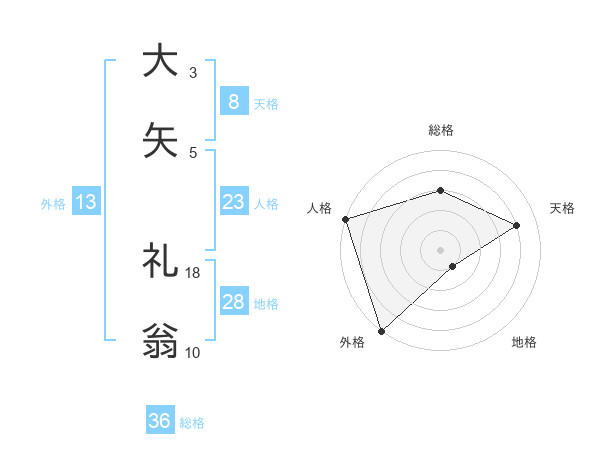 大矢 礼翁さんを姓名の画数から五運を鑑定