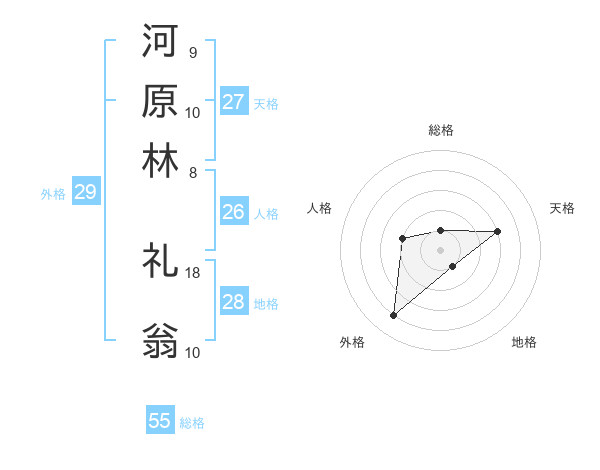 河原林 礼翁さんの総格は55画の1点!