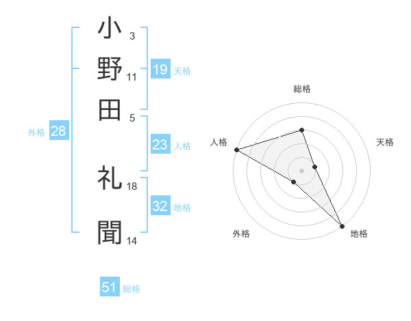 小野田 礼聞さんを姓名の画数から五運を鑑定
