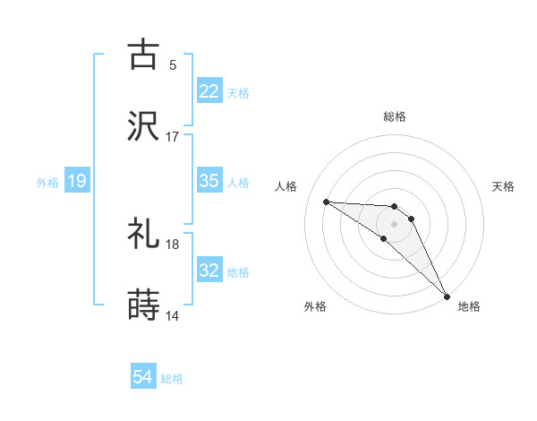 古沢 礼蒔さんを姓名の画数から五運を鑑定