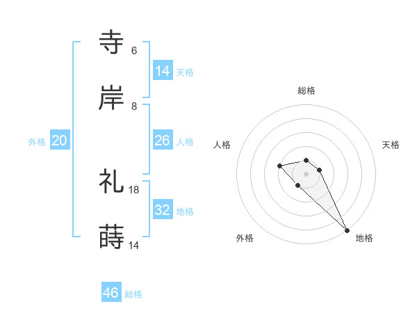 寺岸 礼蒔さんの総格は46画の1点!