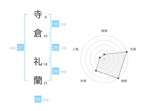 寺倉 礼蘭さんを姓名の画数から五運を鑑定