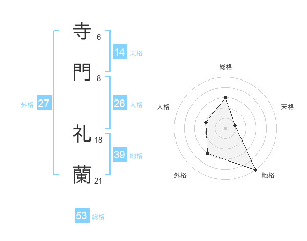 寺門 礼蘭さんを姓名の画数から五運を鑑定