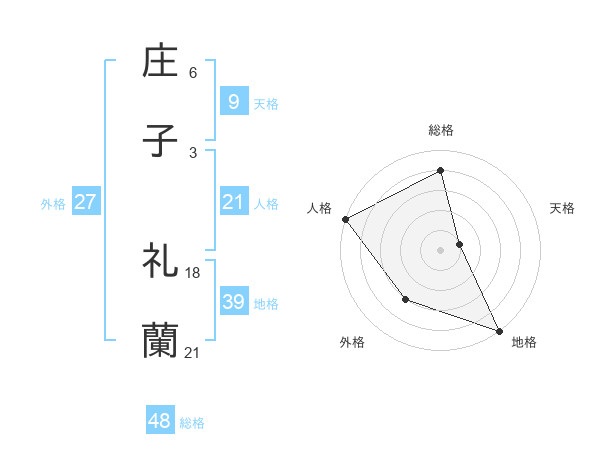 庄子 礼蘭さんの総格は48画の4点!