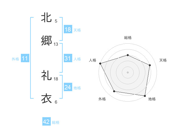 北郷 礼衣さんを姓名の画数から五運を鑑定