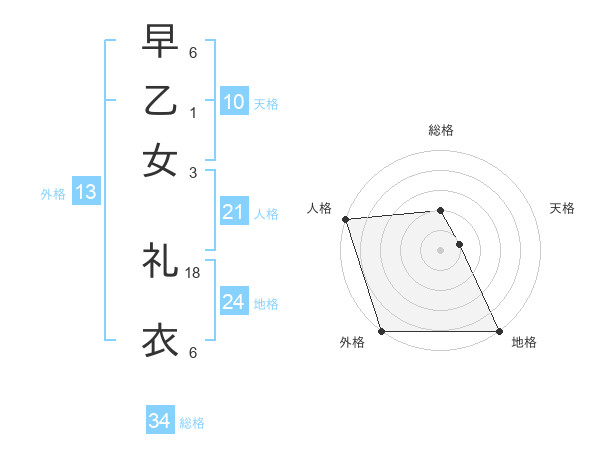早乙女 礼衣さんを姓名の画数から五運を鑑定