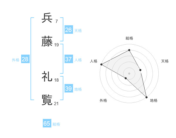 兵藤 礼覧さんを姓名の画数から五運を鑑定