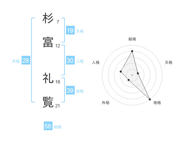 杉富 礼覧さんを姓名の画数から五運を鑑定