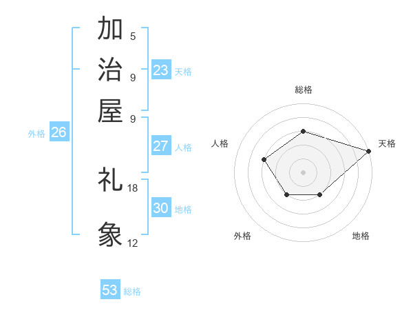 加治屋 礼象さんを姓名の画数から五運を鑑定
