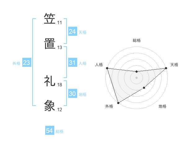 笠置 礼象さんを姓名の画数から五運を鑑定