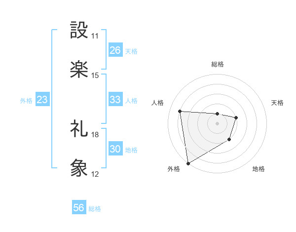 設楽 礼象さんを姓名の画数から五運を鑑定