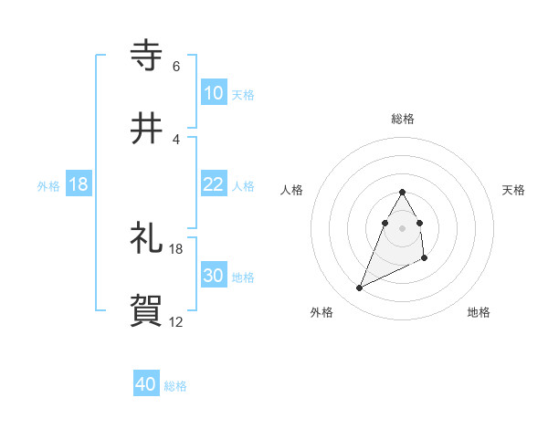 寺井 礼賀さんの総格は40画の2点!
