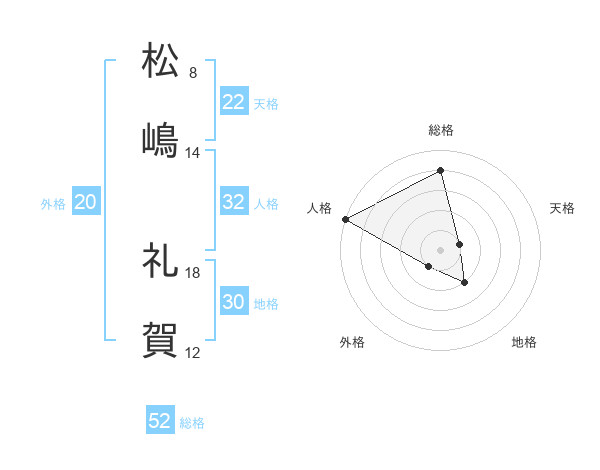 松嶋 礼賀さんの総格は52画の4点!