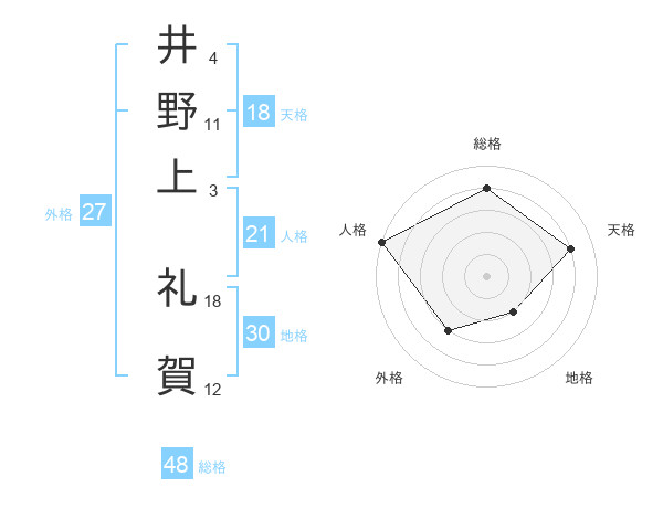 井野上 礼賀さんを姓名の画数から五運を鑑定