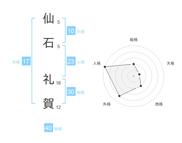 仙石 礼賀さんを姓名の画数から五運を鑑定