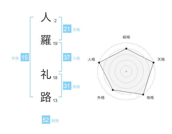 人羅 礼路さんを姓名の画数から五運を鑑定