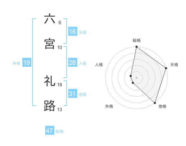 六宮 礼路さんを姓名の画数から五運を鑑定