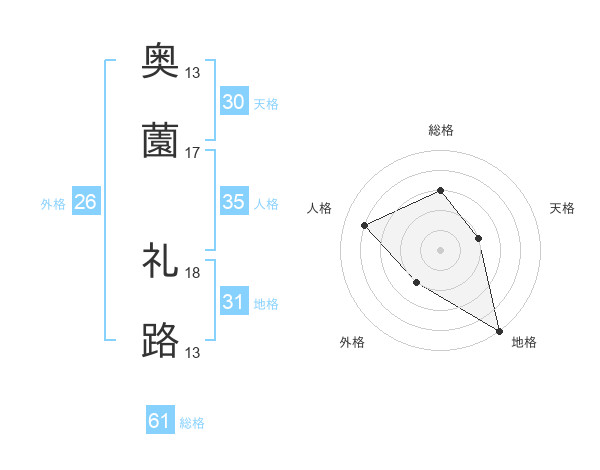 奥薗 礼路さんを姓名の画数から五運を鑑定