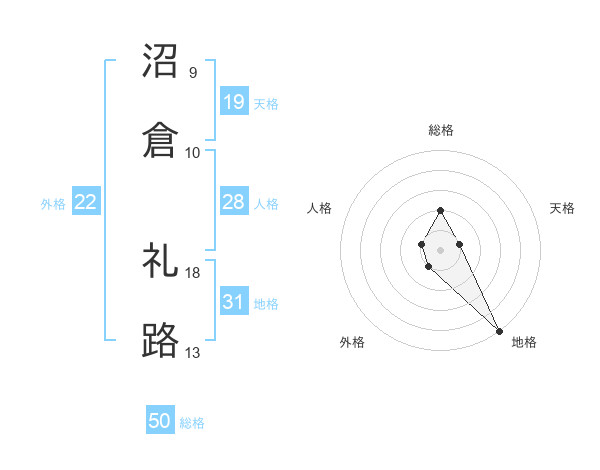 沼倉 礼路さんを姓名の画数から五運を鑑定