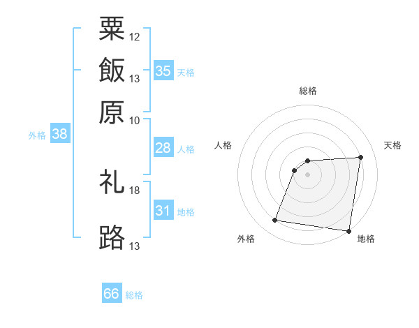 粟飯原 礼路さんの総格は66画の1点!