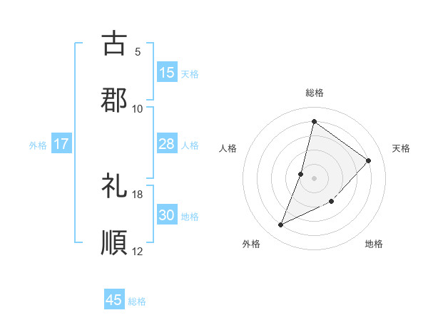 古郡 礼順さんを姓名の画数から五運を鑑定