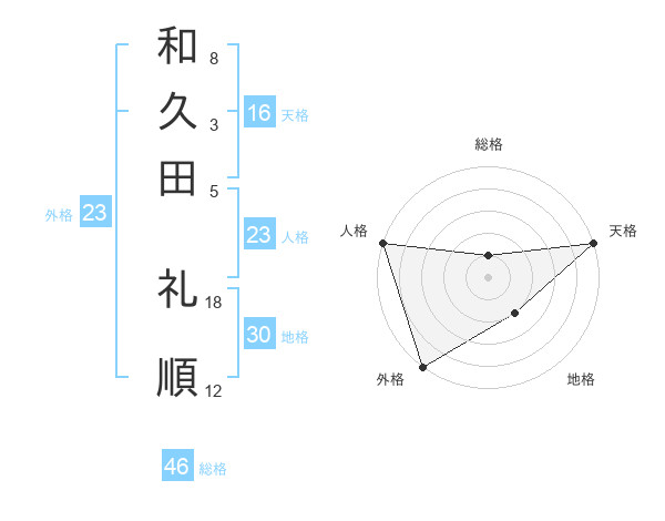 和久田 礼順さんを姓名の画数から五運を鑑定