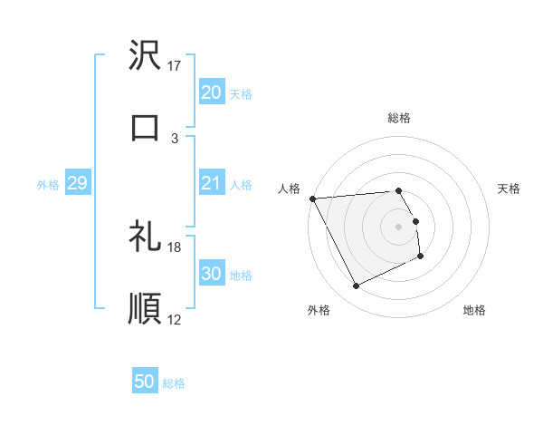 沢口 礼順さんを姓名の画数から五運を鑑定