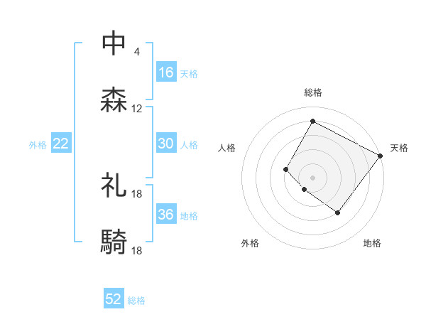 中森 礼騎さんの総格は52画の4点!