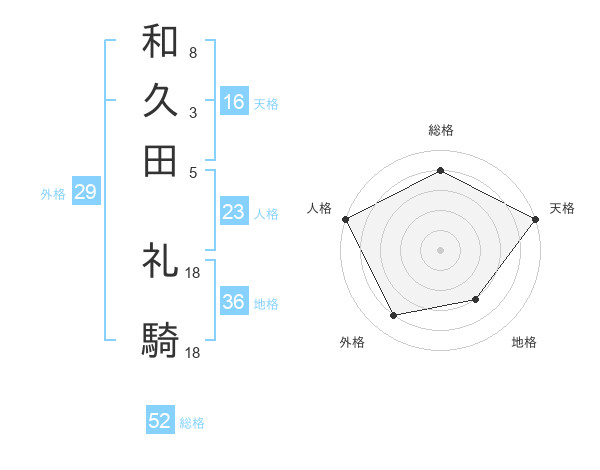 和久田 礼騎さんを姓名の画数から五運を鑑定