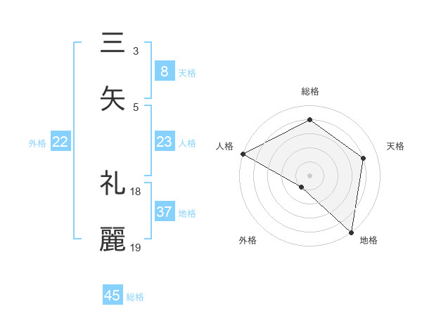 三矢 礼麗さんを姓名の画数から五運を鑑定