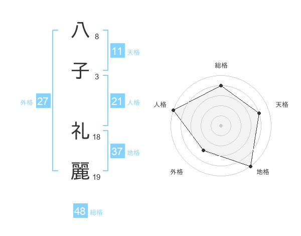 八子 礼麗さんの総格は48画の4点!