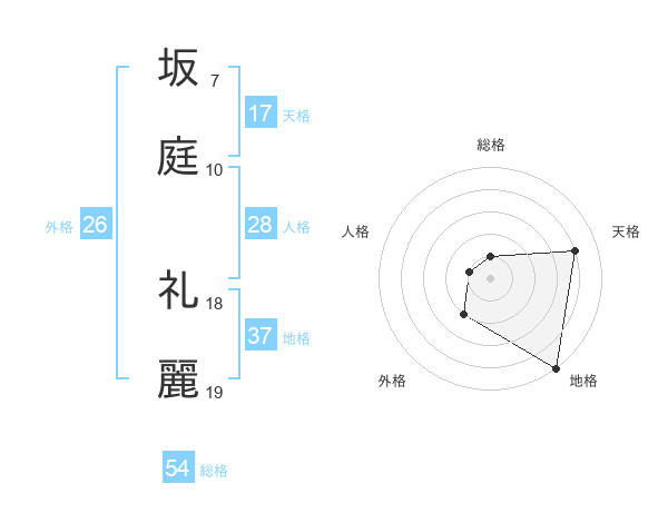 坂庭 礼麗さんの天格は17画の4点!