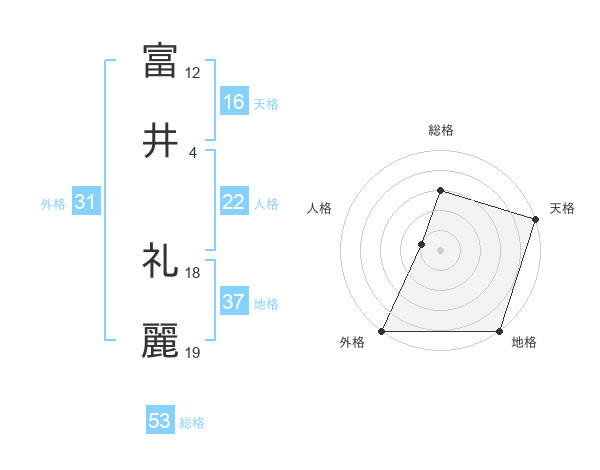 富井 礼麗さんを姓名の画数から五運を鑑定