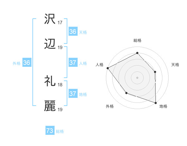 沢辺 礼麗さんの総格は73画の4点!