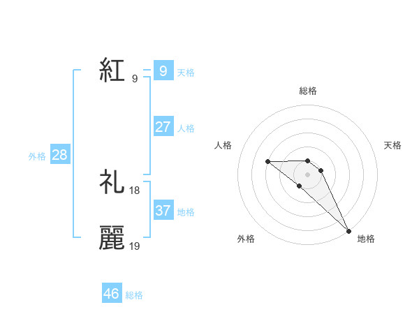 紅 礼麗さんの総格は46画の1点!