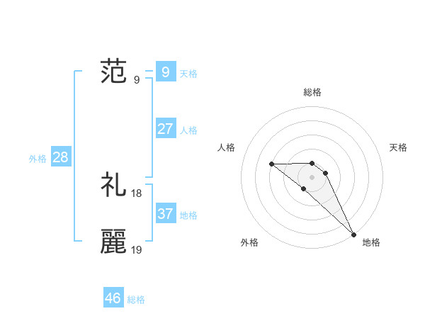 范 礼麗さんの総格は46画の1点!