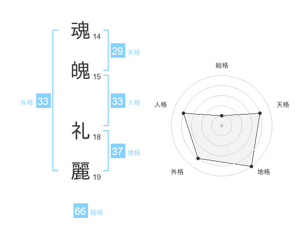 魂魄 礼麗さんの外格は33画の4点!