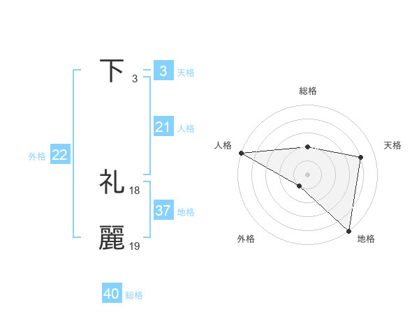 下 礼麗さんの外格は22画の1点!