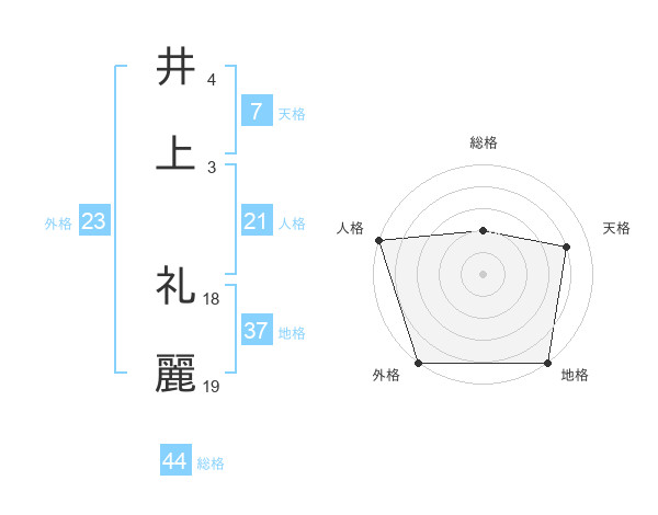 井上 礼麗さんを姓名の画数から五運を鑑定