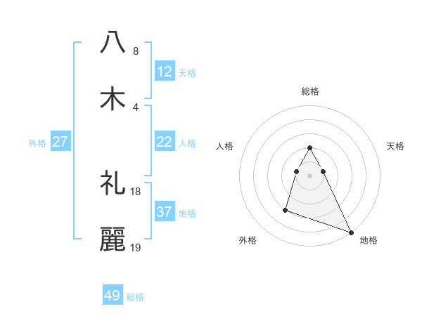 八木 礼麗さんを姓名の画数から五運を鑑定