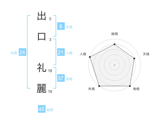 出口 礼麗さんを姓名の画数から五運を鑑定