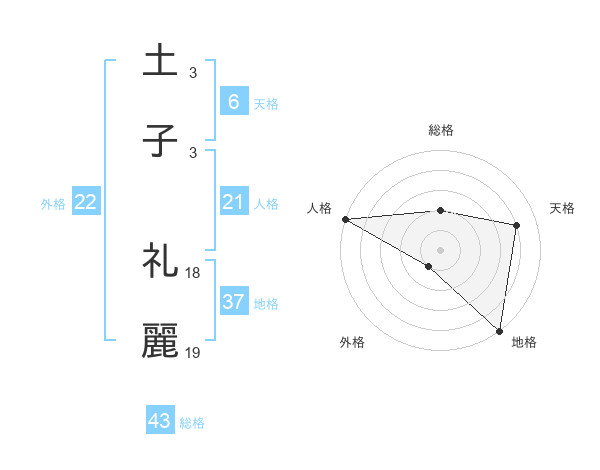 土子 礼麗さんを姓名の画数から五運を鑑定