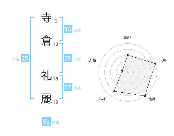 寺倉 礼麗さんの天格は16画の5点!