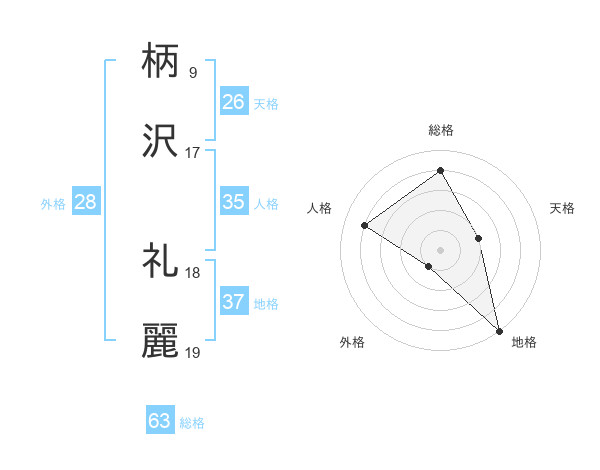 柄沢 礼麗さんの総格は63画の4点!