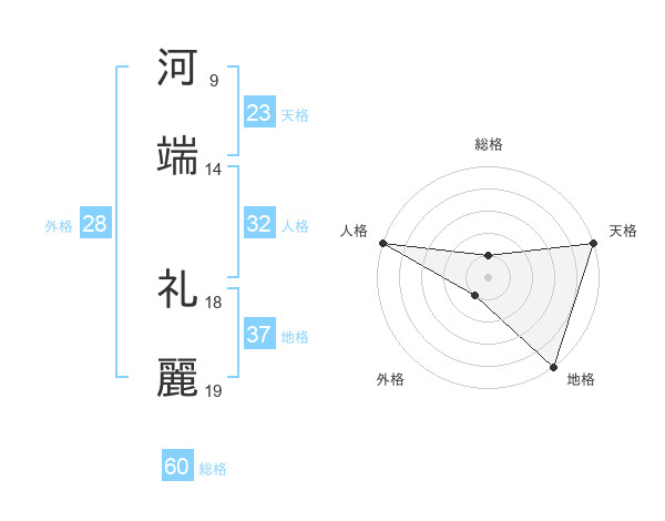 河端 礼麗さんを姓名の画数から五運を鑑定