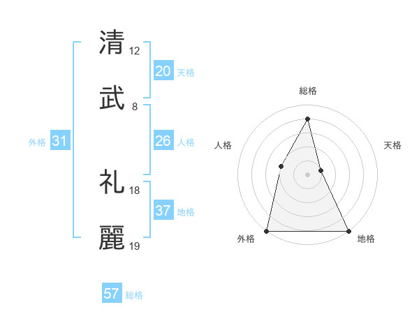 清武 礼麗さんの総格は57画の4点