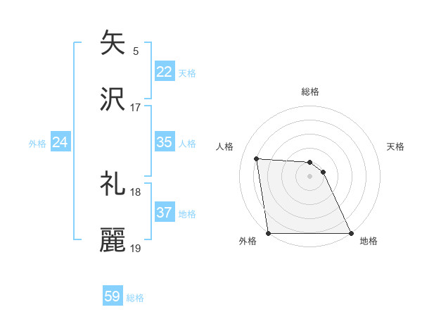 矢沢 礼麗さんを姓名の画数から五運を鑑定