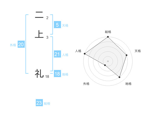 二上 礼さんの総格は23画の5点!